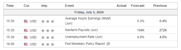 The market is also closely watching today’s NFP report. A soft NFP would likely exert further downside pressure on the dollar, heightening speculation of a Fed rate cut. With Wall Street on pause due to the U.S. public holiday, global equities continued to edge higher, reflecting improved risk appetite. In the commodity market, gold prices are at their highest level in two weeks, while oil prices are buoyed by Hurricane Beryl, which is affecting production in the Gulf of Mexico and constraining oil supplies.