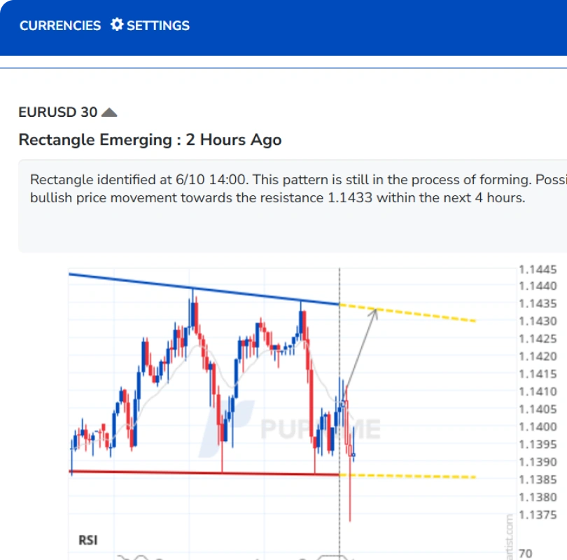 Saņemiet reāllaika brīdinājumus par potenciālām tirdzniecības iespējām.