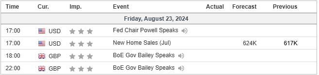 The Bank of Japan (BoJ) remains on course with its monetary tightening policy, according to the BoJ Chief, following his hearing at the Japan Lower House. However, he emphasised that there is no rush for the next rate hike, as the central bank continues to monitor global economic conditions. This hawkish stance has strengthened the Japanese Yen in the Tokyo session. Meanwhile, several Federal Reserve officials have suggested a slower pace for rate cuts, despite a downward revision of the Non-Farm Payroll (NFP) numbers and easing inflation in the U.S. The Fed’s cautious approach led to a decline in the U.S. equity markets, while the dollar found support above the $101 mark. Traders are focusing on today’s Jackson Hole Economic Symposium, where both Jerome Powell and the Bank of England’s Andrew Bailey are set to speak. Their comments could provide insights into the timing of rate cuts for their respective central banks.