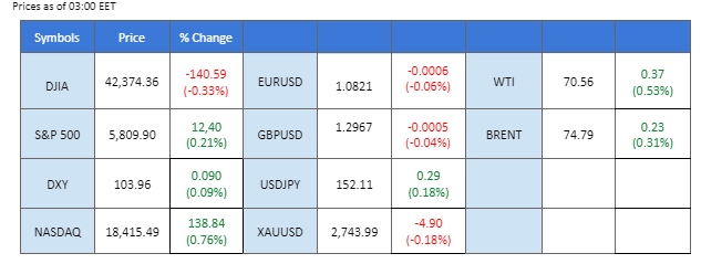 Crude oil prices experienced a retreat, primarily due to concerns over a pessimistic global economic outlook and rising demand for electric vehicles. In China, recent fiscal measures have been deemed insufficient by the IMF to address deflationary risks in the world’s second-largest economy. Meanwhile, economic activity in the Eurozone remains in contraction territory, with demand falling both domestically and internationally. Similarly, the UK is facing a dip in business optimism, as firms anticipate challenging economic conditions ahead of the new government’s budget announcement.