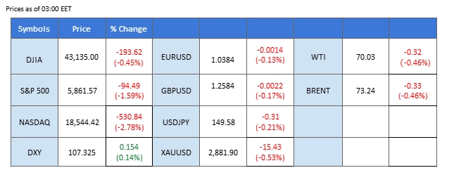 The prospect of escalating trade tensions weighed heavily on risk assets. Wall Street ended lower, led by a sharp 500-point drop in the Nasdaq, while the Hang Seng Index also opened more than 500 points lower as investors priced in heightened uncertainty.