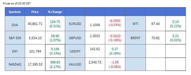 In contrast, gold prices were hit by improved risk appetite and a stronger dollar. However, oil prices moved higher, buoyed by the better-than-expected U.S. economic data and supply disruptions caused by Hurricane Francine along the Gulf Coast.