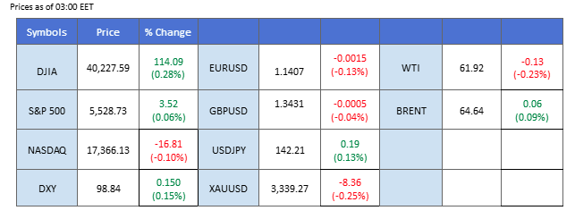 Commodities were mixed, with gold prices retreating slightly as cautious optimism around the U.S.-China trade negotiations tempered safe-haven flows. Oil prices stabilized after recent declines, caught between economic slowdown fears and the potential supply shifts stemming from U.S.-Iran nuclear discussions. Meanwhile, tariff headlines continued to stir broader market uncertainty, with ongoing concerns that renewed trade barriers could weigh further on global growth prospects.