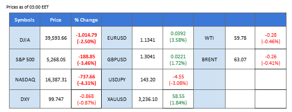 As a result, demand for safe-haven assets surged, with gold rallying to a fresh all-time high above the $3,200 mark. Meanwhile, safe-haven currencies like the Japanese Yen and Swiss Franc climbed to new highs, reflecting mounting concerns over the trajectory of global trade and economic growth.