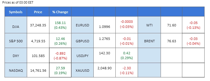 Gold maintains its position above the $2,000 level, supported by the US Dollar’s depreciation following the Federal Reserve’s indication of a potential rate cut in 2024. The continued weakening of the US Dollar also acts as a tailwind for dollar-denominated gold. As major central banks, such as the ECB and the Bank of England, adopt a slightly hawkish tone in contrast to the Federal Reserve, investors pivot toward the Euro and Pound, diminishing the appeal of the Dollar and influencing the gold market.