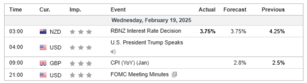 NZD/USD came under heavy selling pressure after the Reserve Bank of New Zealand (RBNZ) delivered a larger-than-usual rate cut during the Sydney session, sending the pair to its weekly low before staging a technical rebound. The Kiwi’s weakness was further exacerbated by RBNZ officials signaling two additional rate cuts in the first half of 2025, reinforcing a dovish policy stance. This outlook has widened the monetary policy divergence between New Zealand and its peers, making the NZD less attractive in the forex market.