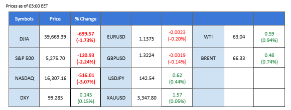 US equity markets fell sharply, reflecting fragile investor sentiment amid mounting fears of slowing economic growth and rising input costs. With the Fed maintaining a cautious stance and signaling no immediate plans for rate cuts, businesses may continue to struggle under the weight of higher material and borrowing costs. As company profit margins come under pressure, the outlook for US equities remains clouded by uncertainty, with stagflation risks denting investor confidence.