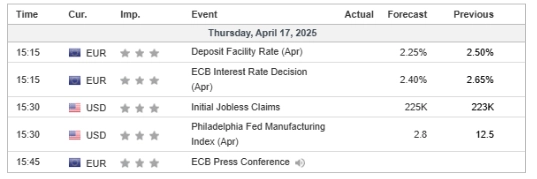 The pound edged lower following weaker-than-expected CPI data, with headline UK inflation rising only 2.6% YoY (vs. 2.7% expected). The data reignited concerns over the UK’s economic health amid ongoing global trade uncertainties. As inflation softens and broader growth risks increase, investor confidence in the pound remains shaky, especially without clearer direction from the Bank of England.