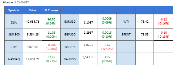 The US equity market extended its gains, supported by falling US Treasury yields and expectations of rate cuts from the Federal Reserve. Typically, lower interest rates and declining Treasury yields provide a boost to high-growth sectors, helping the equity market to climb higher. However, the bullish momentum remains cautious as investors stay wary of potential Middle East tensions, which could negatively impact market sentiment.