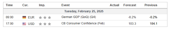 The EUR/USD pair has formed an “Evening Star” candlestick pattern, a potential bearish reversal signal, in the last session. However, the pair is currently hovering flat, awaiting a catalyst to determine its next direction. Fundamentally, the Eurozone CPI met market expectations, while the German election results aligned with forecasts, mitigating political risk in the region. These factors have lent support to the euro, keeping it relatively stable despite broader market uncertainty. Moving forward, traders will focus on the U.S. dollar’s movement—should the greenback ease today, EUR/USD could seize the opportunity to push higher