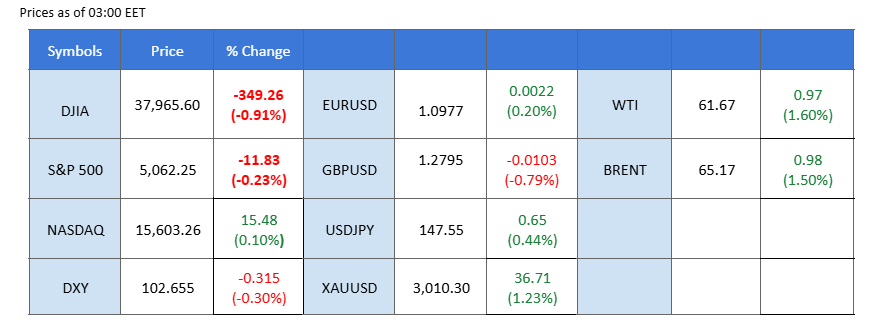 U.S. equities steadied after Monday’s steep selloff, with the Dow Jones, S&P 500, and Nasdaq all closing with marginal changes, reflecting a tentative return of investor confidence.