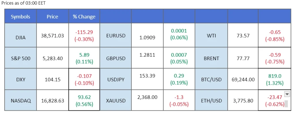 The U.S. dollar remained on a downward trajectory following the release of yesterday’s PMI readings, which fell short of market expectations. Persistent lacklustre performance in the U.S. economy has increased speculation of a Fed rate cut this year, causing U.S. Treasury yields to rise and placing pressure on the dollar’s strength. In addition to monitoring the U.S. dollar, traders are closely watching tomorrow’s release of Australian GDP data and the Bank of Canada’s interest rate decision. A strong Australian GDP figure could pave the way for a more hawkish monetary policy stance by the Reserve Bank of Australia (RBA). Conversely, Canada’s CPI reading came in below 2%, leading the market to anticipate a 25-basis-point interest rate reduction by the Bank of Canada (BoC) tomorrow. In the commodity market, gold prices have remained relatively flat due to a lack of catalysts, while oil prices have continued to decline in response to the unfavourable outcome of the recent OPEC+ meeting.