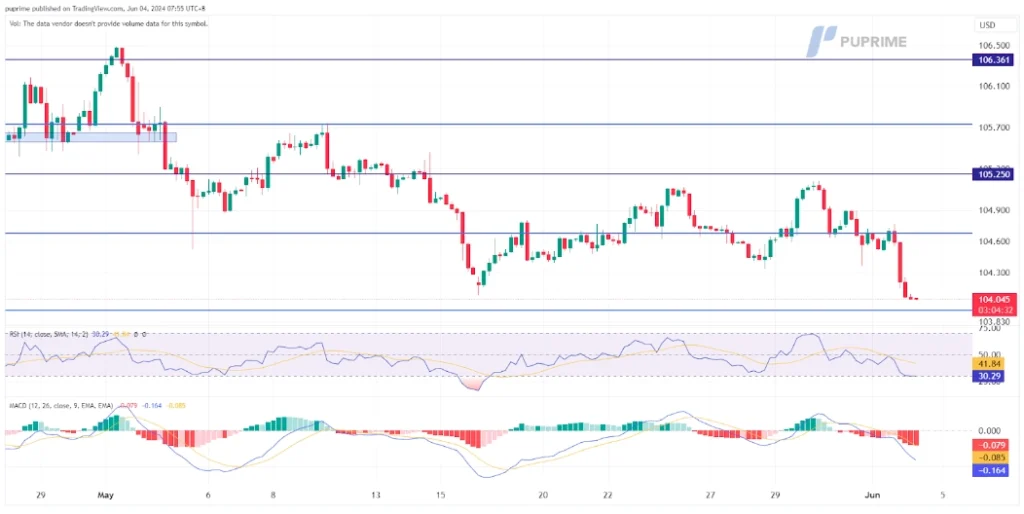Support level: 104.00, 103.20