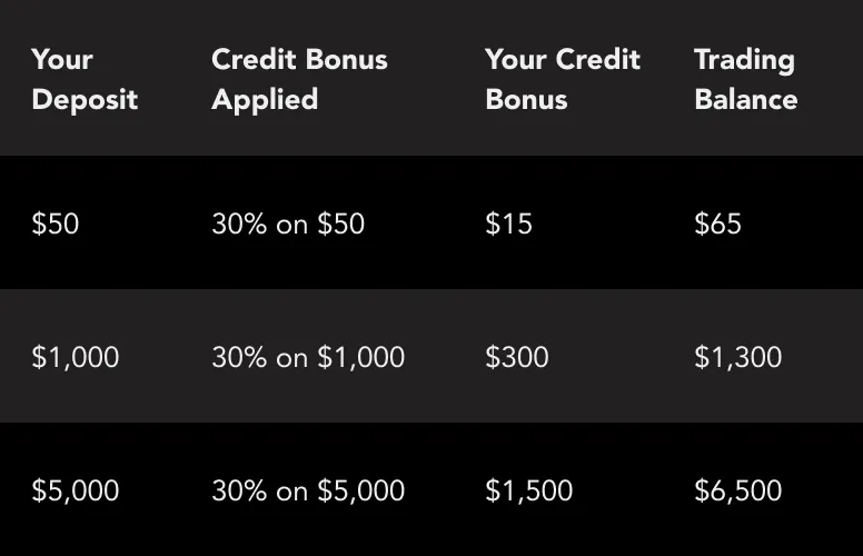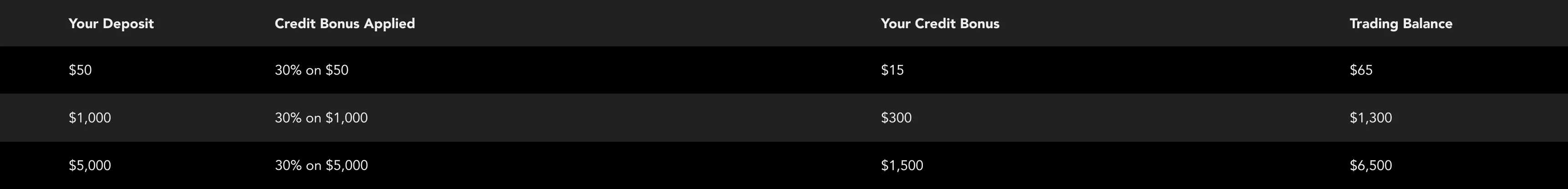 4.Eligible Clients (both new and existing clients), who meet the criteria set forth herein are able to receive credit bonuses or otherwise known as trading credit, equal to: