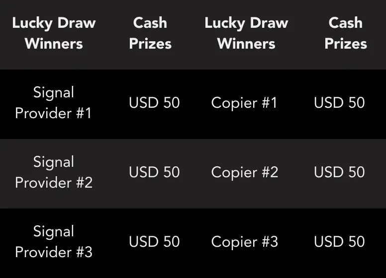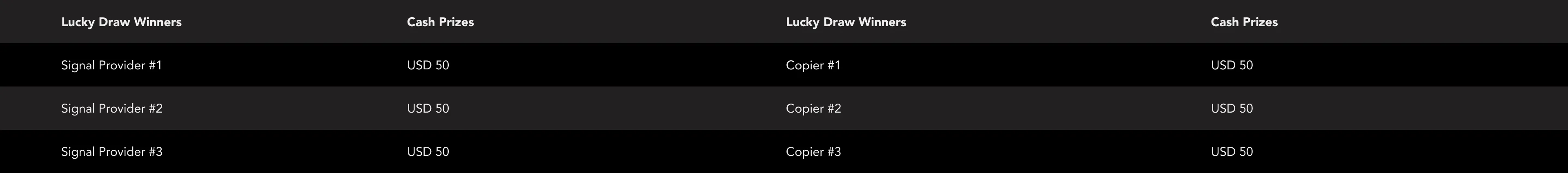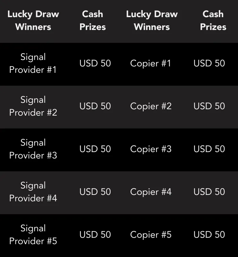 2.The “Copy Trading Lucky Draw” ("Promotion") may be offered by PU Prime from time to time to clients who open live trading accounts (excluding demo accounts) with PU Prime, in cases where such clients are referred to PU Prime via specific websites and/or social network sites in the context of certain specific promotions, and/or surveys that PU Prime may be running from time to time on such specific websites and/or social network sites.