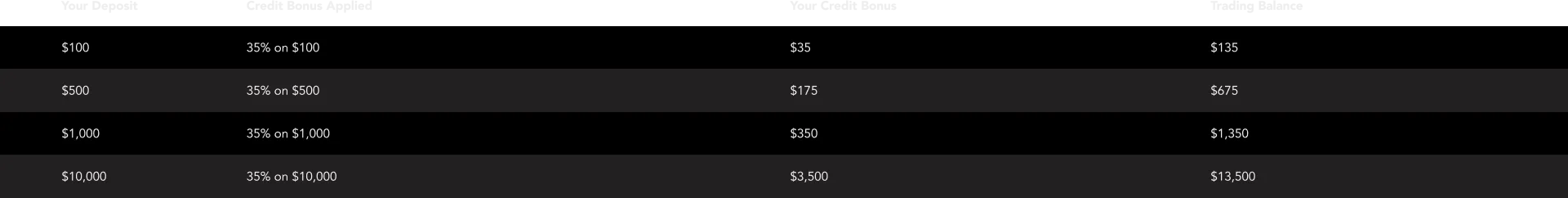 2. The “MENA 35% Deposit Bonus” is available ONLY for Standard Account, Islamic Standard Account, Prime Account, Islamic Prime Account.