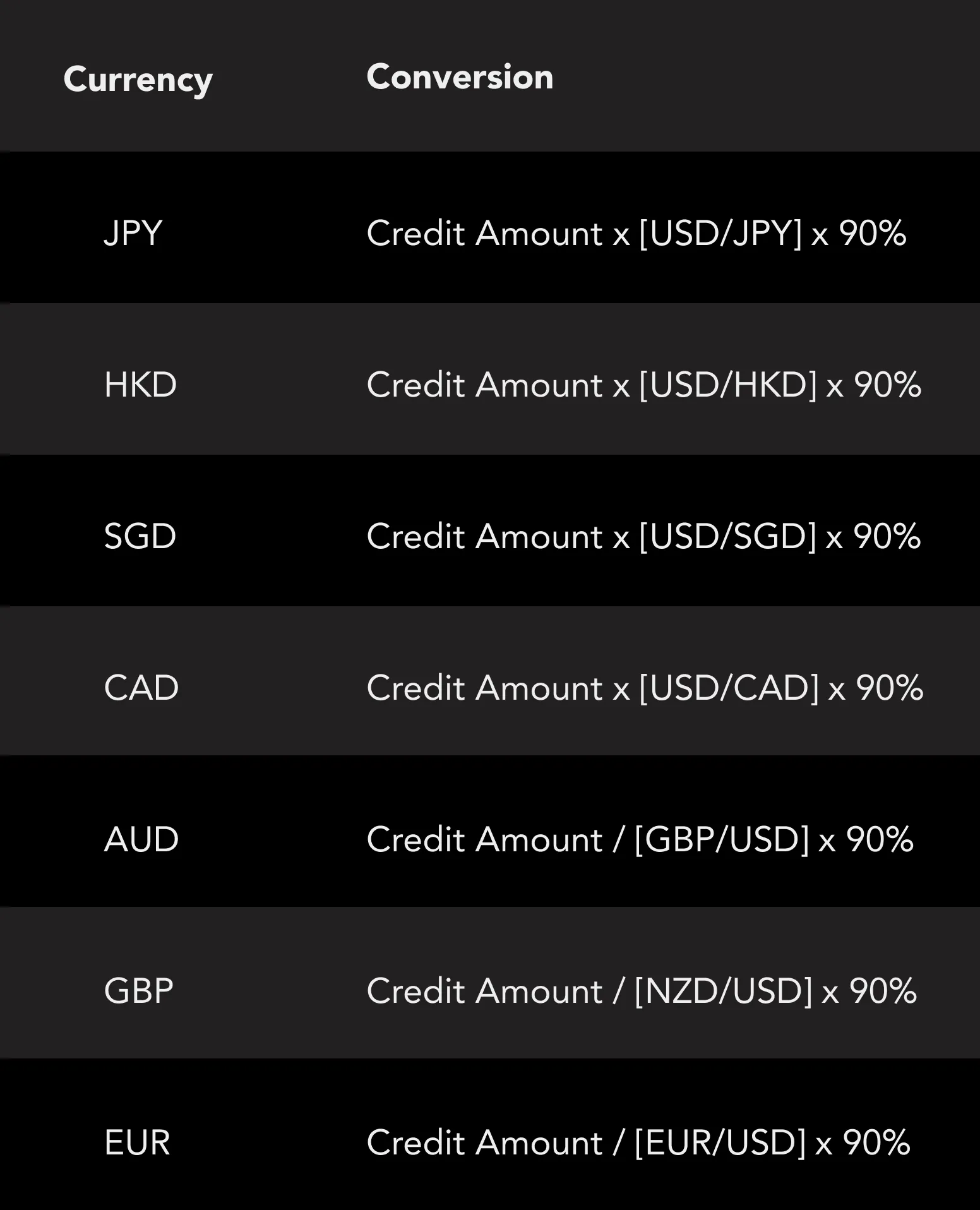 11.If the client’s account is not denominated in USD, we will convert the cash rewards amount using the following method: