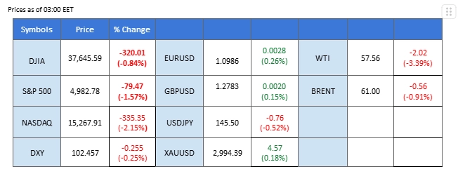 Meanwhile, oil prices continued to nosedive, pressured by the deteriorating demand outlook driven by escalating trade tensions. WTI crude dropped below the $60.00 mark, touching its lowest level since 2021, as concerns over slowing global growth and oversupply weighed on sentiment.