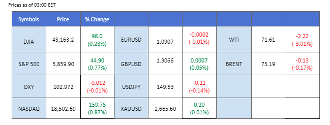 In the forex market, the U.S. dollar maintained its bullish momentum, trading above the $103 mark, as traders anticipate a smaller Fed rate cut in the near term. The USD/JPY pairing is drawing attention, as it approaches the critical 150 level, a threshold that could prompt action from the Bank of Japan (BoJ) to stabilise the yen. Traders should monitor this level closely, as it could be pivotal for yen intervention or other policy shifts.