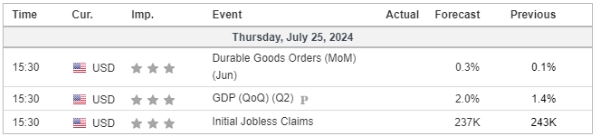 In contrast, the Japanese Yen continued to strengthen ahead of next week’s BoJ interest rate decision, with increasing expectations that the BoJ may opt for a more restrictive monetary policy. Traders should closely monitor today’s U.S. GDP reading to gauge the direction of the dollar.