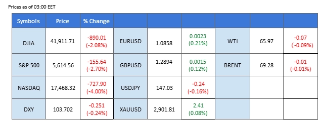 Safe-haven assets outperformed amid heightened market uncertainty, with both the Japanese yen and Swiss franc strengthening. In commodities, gold traded steady, while oil prices extended losses, plunging to fresh lows as concerns over a deteriorating global economic outlook deepened.