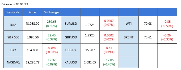 The U.S. dollar held steady following a recent sell-off driven by the Fed’s dovish monetary policy moves. The Fed is expected to align its actions with Trump’s policies, which could potentially elevate inflation, prompting the U.S. central bank to focus on mitigating inflationary risks. Meanwhile, the Japanese yen softened at the start of the week as markets absorbed the BoJ’s recent policy outlook, indicating the central bank may delay its next rate hike until next year.